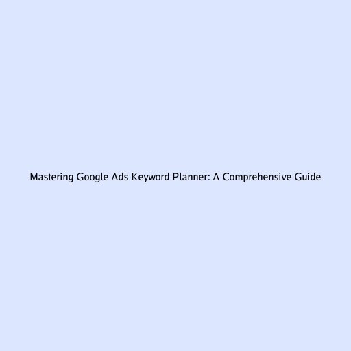 Mastering Google Ads Keyword Planner: A Comprehensive Guide